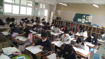 1時間目は国語の調査です。普段の単元テストとは違う問題用紙と解答用紙が別々の形式となっています。午前中に算数・理科そしてすくすくウォッチのわくわく問題と続きます。