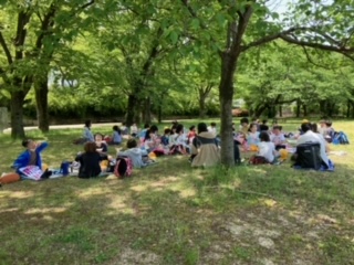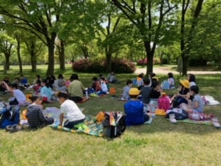 待ちに待ったお弁当タイムです。たくさん遊んだので、食欲旺盛。「みんなで食べると美味しいね」と話していました。