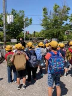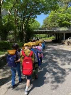 緑地公園駅で電車を降りて緑地公園に着きました。いよいよオリエンテーリングの開始です。五月晴れのいい天気です。