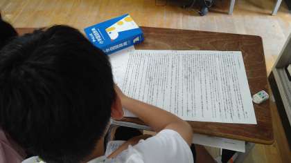 長い説明文です。博士ノート(説明文)に沿って、まず国語辞典で意味調べをしています。その後、序論・本論・結論に分けるなどの作業をしています。