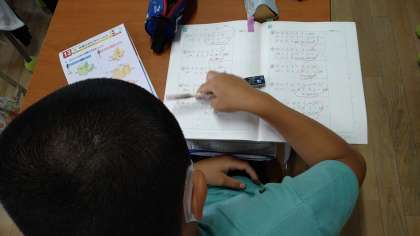 ドリルの直しと比例の学習をしています。
