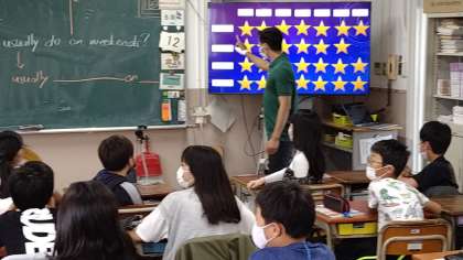 「週末何をしていますか?」という問いかけに対する答えによって1から3ポイントが入ります。大逆転できるブラックホール(それまでの点数がなくなってしまう)とバキューム(相手の点数を奪える)があら盛りあがりました。2回戦おこない、1勝1敗でした。