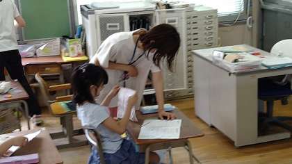 朝の会で前日の宿題の答え合わせをしています。