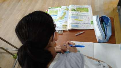 川の長さ、ベスト5を調べると西日本にはなく、東日本にあることがわかりました。ここから「なぜ長い川が東日本に多いのか。」について自分の考えを発表し、意見交流をしながら学習を進めています。