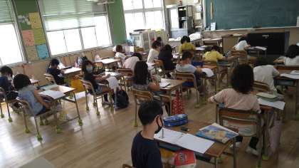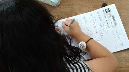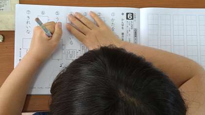 少しドリルを見て確認してから始める児童もいれば、すぐに始めている子どもたちがいます。ドリルで意識して書いたていねいな文字を「たしかめ」にも書くことができる子どもたちが何人もいます。