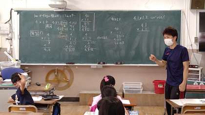 小数第一位?小数第一位の文章題に取り組んでいます。式を立てて筆算の計算まではスムーズにいきましたが、最後の小数点の位置をどこにするかで悩む子どもたちがいました。指導者の思惑通りに学習が進んでいます。