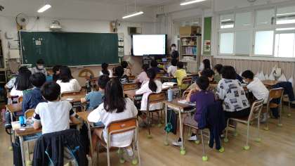 後半は、外国の紹介をする文作りとプレゼンテーションの練習をしています。