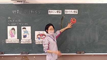 栄養教諭による「野菜について知ろう」というテーマの学習です。