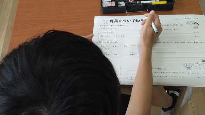 野菜が体にとって必要な理由や色のうすい野菜とこい野菜の見分け方、その役割の違いを教えてもらっています。