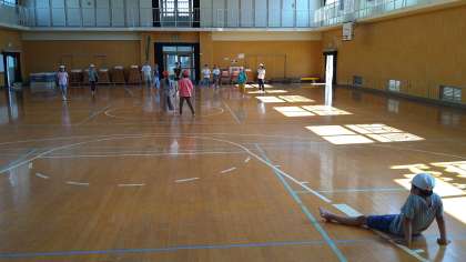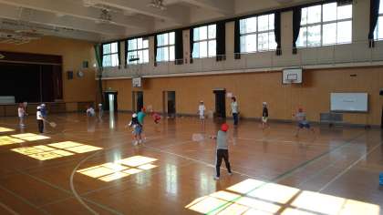ドッジボールとバドミントンをしています。