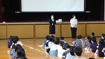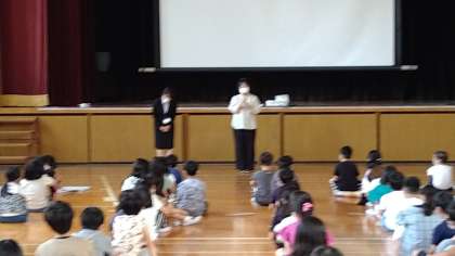 児童集会の中で教育実習生の紹介をしました。