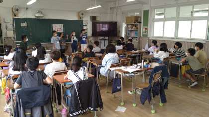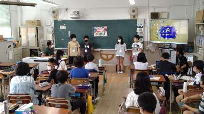 6つの国は、韓国・スイス・フランス・アメリカ合衆国・オーストラリア・カナダです。時には身振り手振りを加えて発表しています。アージェル先生からも褒めていただいています。