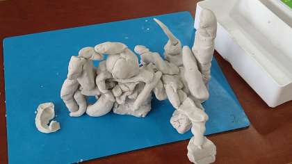 油粘土を使って制作しています。