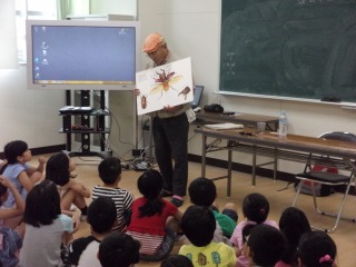 大きな昆虫の絵が貼ってあり、その大きさに子どもたちびっくりしていました。
