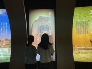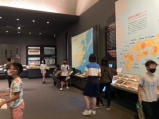 館内を見学しながら学習ノートに書いています。空中ディスプレイなどもあって、分かりやすくなっています。