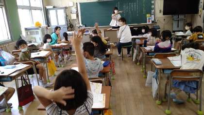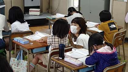 さおりさんのお兄さんが友だちのともくんと遊ぶ約束をするために電話をします。その電話のやり取りを聞いたお母さんがにこにこしています。お母さんのにこにこの理由について考えています。