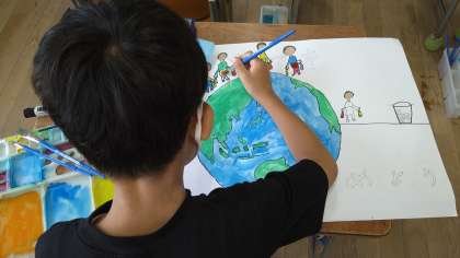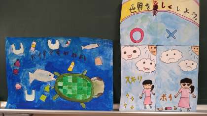 環境を守ることに関するポスターをかいています。
