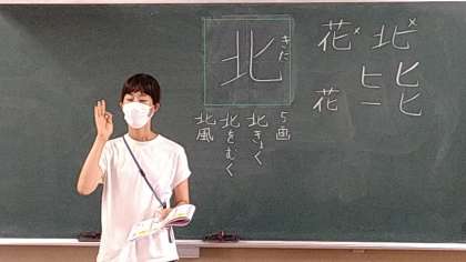 今日は「北」の漢字を練習しています。「北」では北きょく(極)・北かぜ(風)などの言葉(熟語)が発表されています。