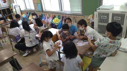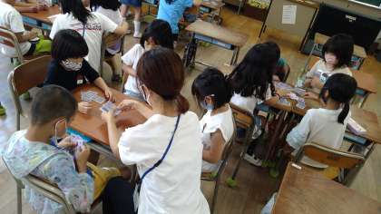 今回もグループはくじを引いて決めています。どんなゲームにするかは相談して決めています。それぞれのグループで盛りあがっています。