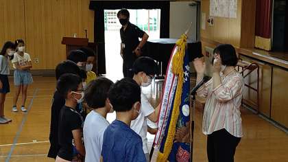 子ども会ソフトボール「東小橋レッドスターズ」の表彰がおこなわれています。