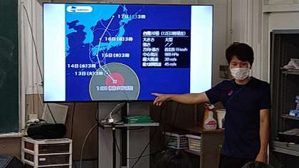 この時間は台風について考えています。大きな被害をもたらすこともある台風ですが、悪いことだけしかないのかという発問に対して飲み水の確保につながることを発表しています。