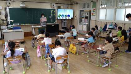 かこう」という単元を使って説明しています。「たのしかったこと、うれしかったこと、くやしかったことなど」を書くことをお話しています。