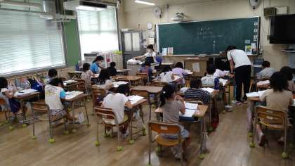 教科書の練習問題、算数ドリルを使ってまとめ(復習)をおこなっています。2学期からは、かけ算(九九)が始まります。算数はこれまでの学習の積み重ねが大切です。夏休み中の課題など子どもたちが困っている時はサポートをお願いいたします。