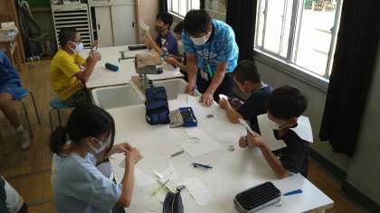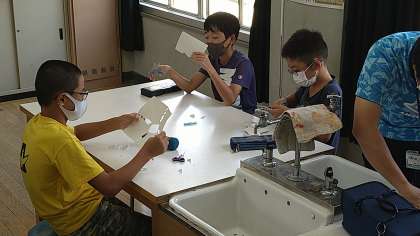 理科室で紙工作をおこなっています。