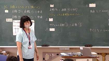直線の垂直と平行の関係性について図を使い、視覚で確認しながら学習を進めています。