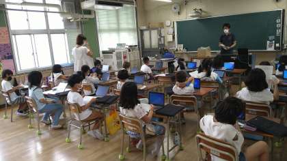 今週末のタブレット端末を使った双方向テストの準備をしています。タブレット端末自体は、「こころの天気」の入力等で使ってはいますが、2年になり機種が変わったため「teams」の復習をしています。