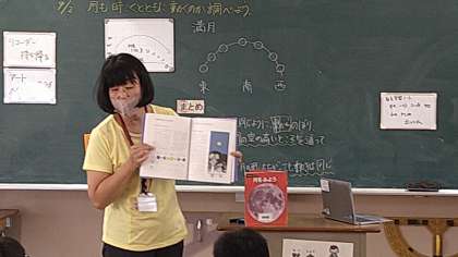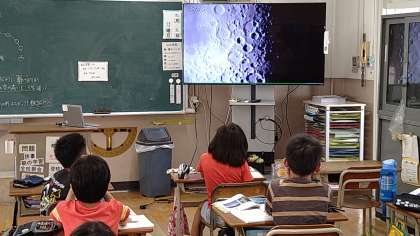月と太陽の共通点をこれまでの経験や教科書から考えています。さらに深い内容は、高学年になってから学習しますが、基本的な動きなどについては、「NHK