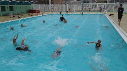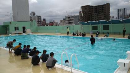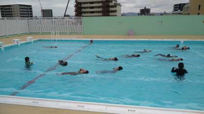 着衣泳を体感したあと、長袖・長ズボンを脱ぎ、普段のプール水泳の格好に戻り、どれだけ泳ぎやすいかを体感して学習が終わりました。