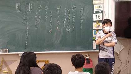 最後の運動会のリレーでアンカーになった「まき」、応援しにきてくれると言っていた父が仕事で来れなくなってしまう。まきの心の葛藤について自分の意見を出しあっています。