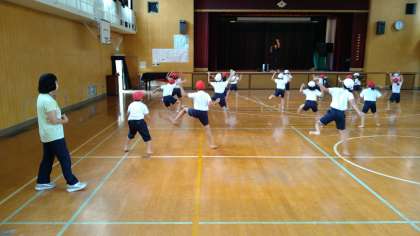 団体演技の練習です。演目は「大阪バンザイ」です。練習の様子からは、振り付けはもちろんですが、声出しも見どころになりそうです。