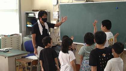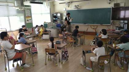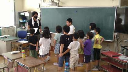 4年生との合同の演技練習が終わり、教室に戻り個人走の走順とコースの確認をしています。走順は同じ組で走るメンバーから代表を出し、希望する順番が重ならない組から決めていき、残った2組はじゃんけんで決めました。