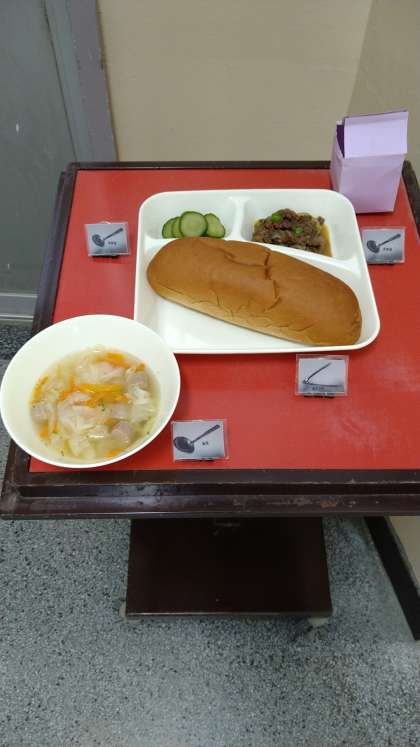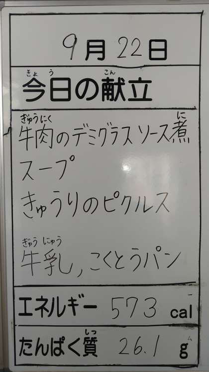 今日の牛肉のデミグラスソース煮は、牛肉をワインで下味をつけたあと炒め、玉ねぎを加えて煮ています。