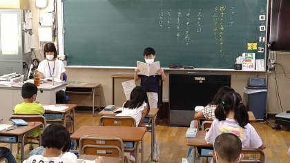 好きな場面を想像して読むことをめあてに学習を進めています。読む前に子どもたちから出た「大きな口で、気もちをこめて、なりきって」などの注意点を確認しています。