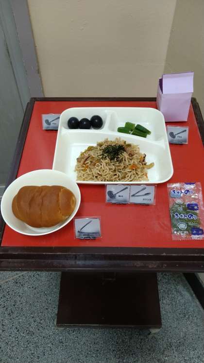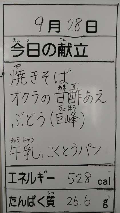 今日は小おかず(デザート)として巨峰が提供されています。1人3粒です。この巨峰は長野県産の種なしとなっています。