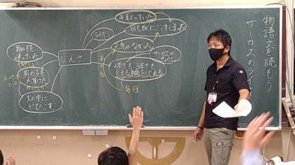川村たかしさんの「サーカスのライオン」です。年老いたライオン、「じんざ」が主人公です。イメージマップを活用して「じんざ」についてわかったことを広げて共有しています。
