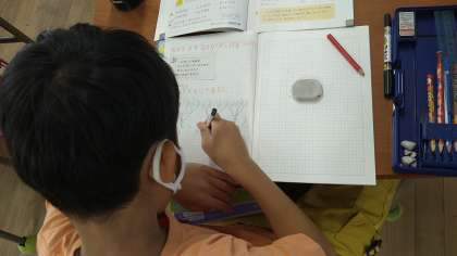3桁(百何十)÷2桁(何十)という式になります。10のまとまりで考える方法と図を使って考える方法で答えを求めています。