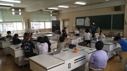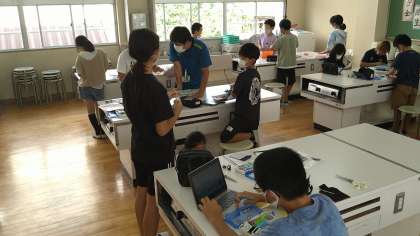 作った作品は、タブレット端末で撮影しています。撮影した作品を指導者が「ティームズ」でまとめて教室に掲示します。早く作品を完成させた児童はさらに余ったフェルトで追加作品を作っています。