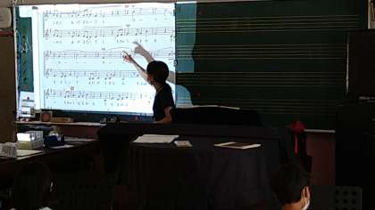 天空の城ラピュタの挿入歌です。「言葉を大切にしながら、気持ちをこめて歌おう」をめあてに二部合唱に取り組んでいます。