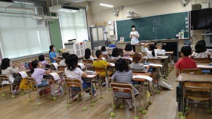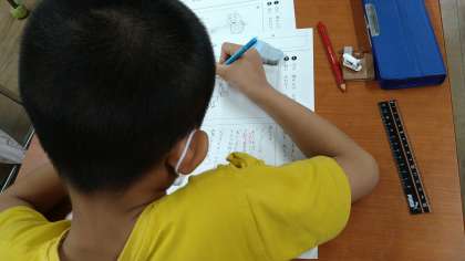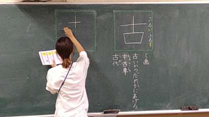 新出漢字は、「古・寺」の2文字を練習しています。線と線の間隔や長さの違いに気づかせながら進めています。物語は1度添削したものをもとに再度ワークシートに書いています。
