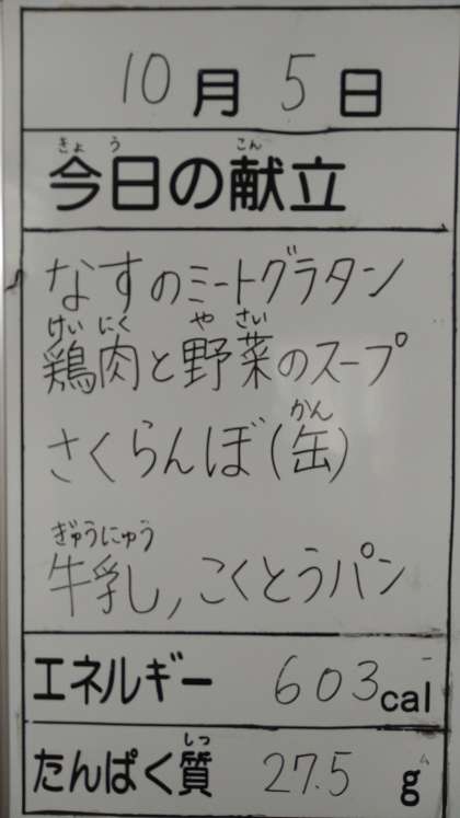今日の給食になすのミートグラタンが提供されました。グラタンは子どもたちに人気があるメニューの1つです。残食率はほぼ0%でした。