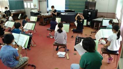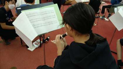 曲目は名探偵コナン「メインテーマ」です。子どもたちの耳にもなじみのある曲です。練習は2学期から始まっています。3、4回の練習でゆっくりですが、聞き覚えのあるメロディになっています。