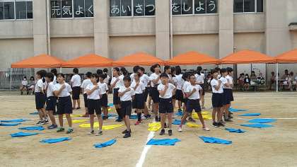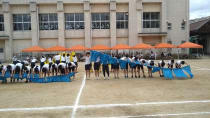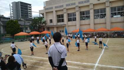 5・6年生による団体演技「フラッグ〜心を一つに〜」の様子です。