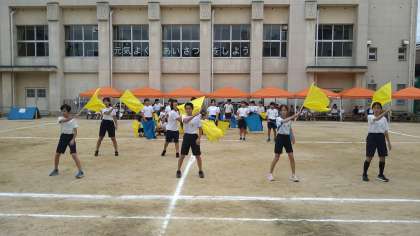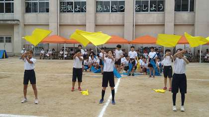 5・6年生による団体演技「フラッグ〜心を一つに〜」の様子です。