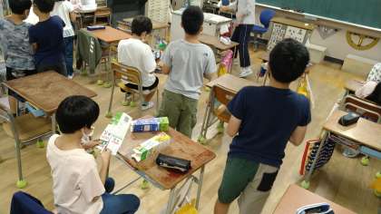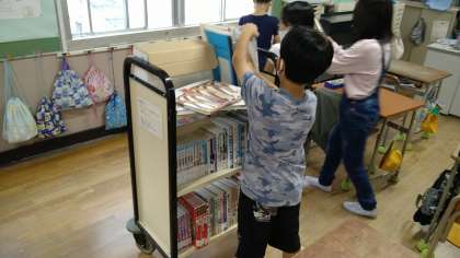 4年は、「お楽しみ」「準備」「図書」の3つの係があります。お楽しみ係はラジオ体操の計画、準備係は牛乳パックの展開など、図書は学級文章の整理や読み聞かせの本の選定をしています。