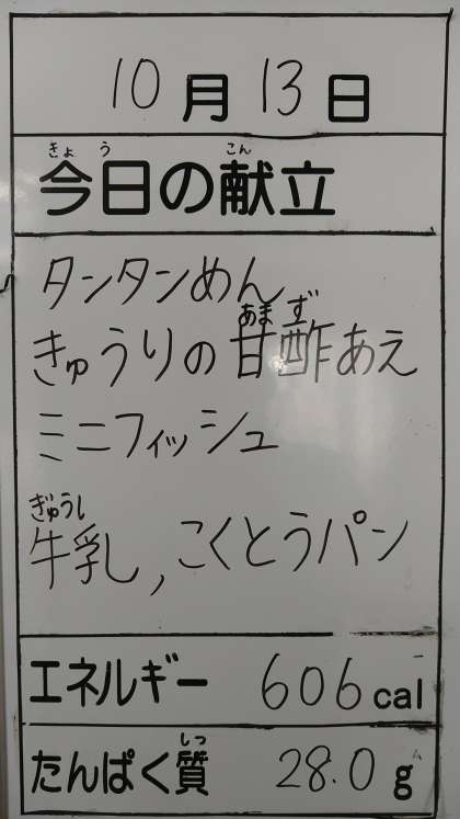 今日の大おかずは、タンタンめんでした。肉味噌の味付けは、砂糖・濃口醤油・テンメンジャン・赤味噌です。