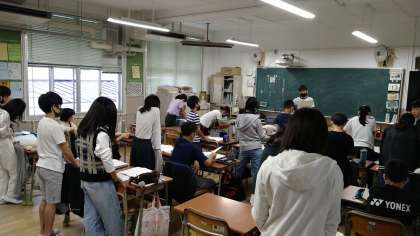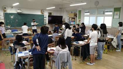 この物語文をふり返りをおこなっています。クラス全員が指導者からの質問に答えています。質問内容は、言葉の意味から登場人物の考えや思いまで多岐にわたっています。